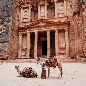 Discover Petra, Jordan’s breathtaking “Rose City,” a UNESCO World Heritage Site and one of the New Seven Wonders of the World. Carved into red sandstone cliffs, this ancient Nabatean city features the iconic Treasury, Monastery, and Siq canyon: experience history, culture, and adventure in one of the world’s most awe-inspiring destinations.